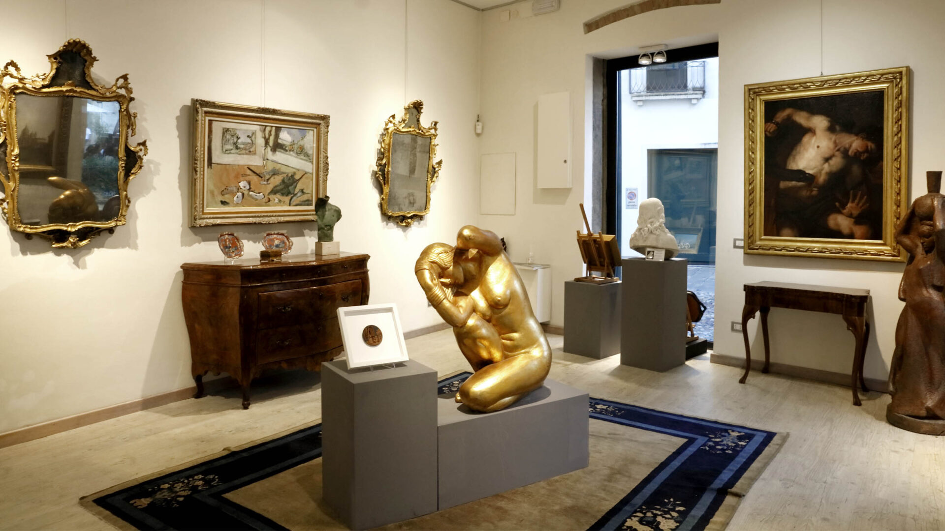 La galleria, che periodicamente ospita e organizza mostre di grandi artisti, si compone di due sale: la prima sala dedicata al moderno con contaminazione antiche, la seconda riservata ad opere dell’Ottocento.